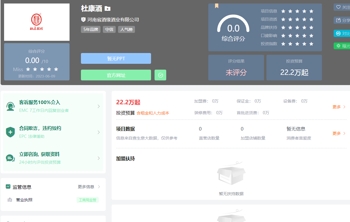 总的来说,加盟杜康酒需要满足多方面的条件。但是具体的实际情况还是要看当地的需求和创业过程。
