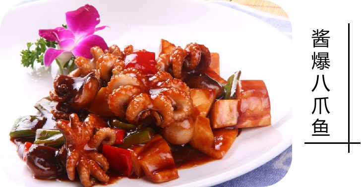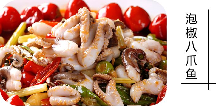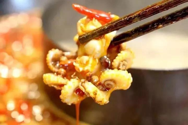 小小的八爪鱼又萌又可爱,简单地烫煮之后触手立即蜷缩了起来,表面沾满了辣汁,色、香、味,足以挑动起你的舌尖味蕾……
