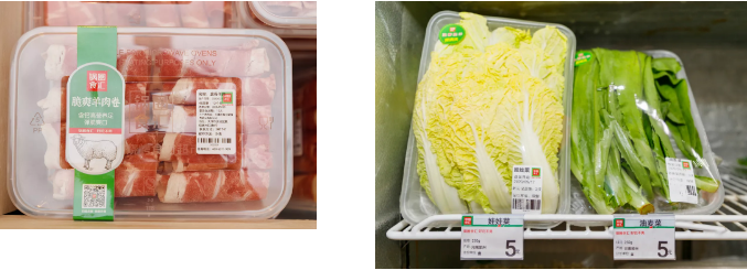 锅圈食汇预包装食材和自采农产品都在外包装上标明了名称、生产日期、保质期、贮存条件等内容,让消费者能够直观的看到产品信息,放心购买。