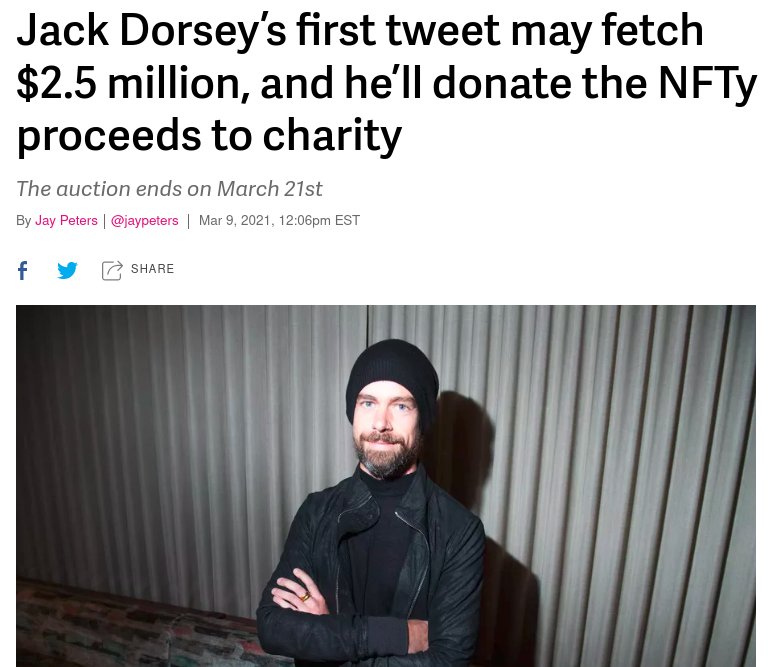 但是,这也可能是一个错失的机会:在我们看来,当那些只是流进了他的腰包时(不过本人最终决定不卖了),帮助埃隆·马斯克卖掉他自己的推文去再赚100万美元并没有带来什么社会价值。如果NFT只是变成一个赌场,在很大程度上让富者更富的话,这样的结果就远没有那么有趣了。