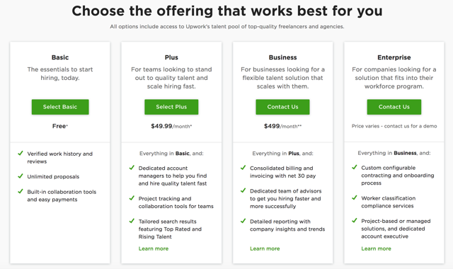现在Upwork也在尝试转变发展策略,加倍向企业客户进行销售,这些客户平均每年在Upwork上花费100万美元。