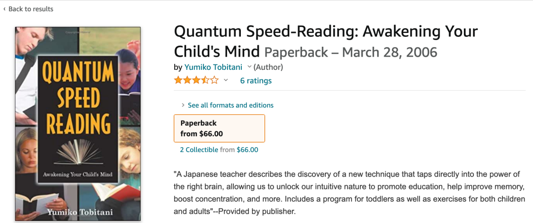 飞谷由美子不但更积极地把「量子」作为卖点,在 2006 年出版了《量子波动速读:唤醒你孩子的智力》,还懂得利用网络媒体比如 YouTube 向全世界推广。