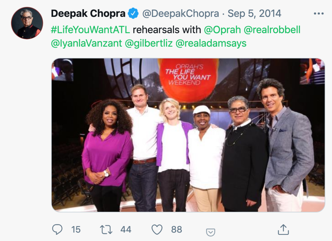 在上过奥普拉的节目后,他的《不老的身体,不老的心灵: 量子替代衰老》在 24 小时内就卖出 13.7 万本,接下来几天内共卖了 40 万本。