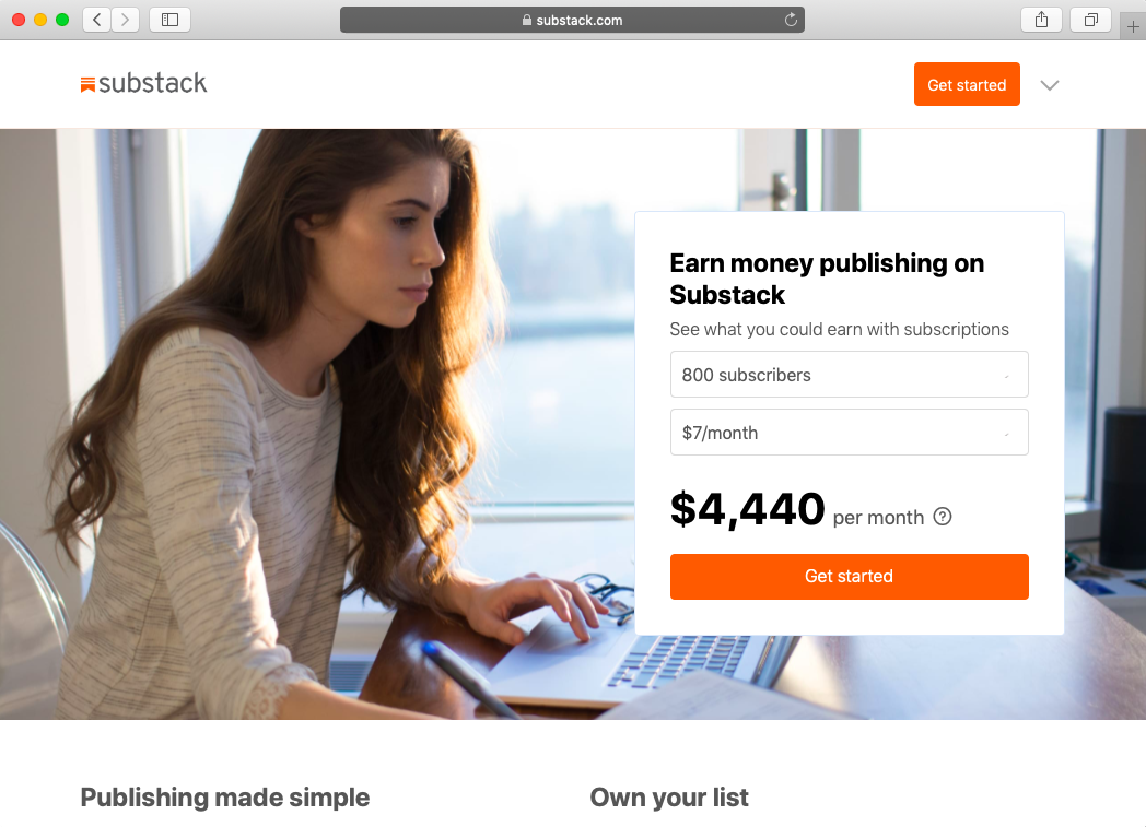 不过近来的讨论主要聚焦于一款产品——Substack,已经有了 50 万付费用户。它在上个月拿到 a16z 领投的 6500 万美元 B 轮融资,估值 6.5 亿美元。许多传统媒体人通过 Substack 搭建了独立的内容「帝国」,以收费的方式向用户邮箱推送。