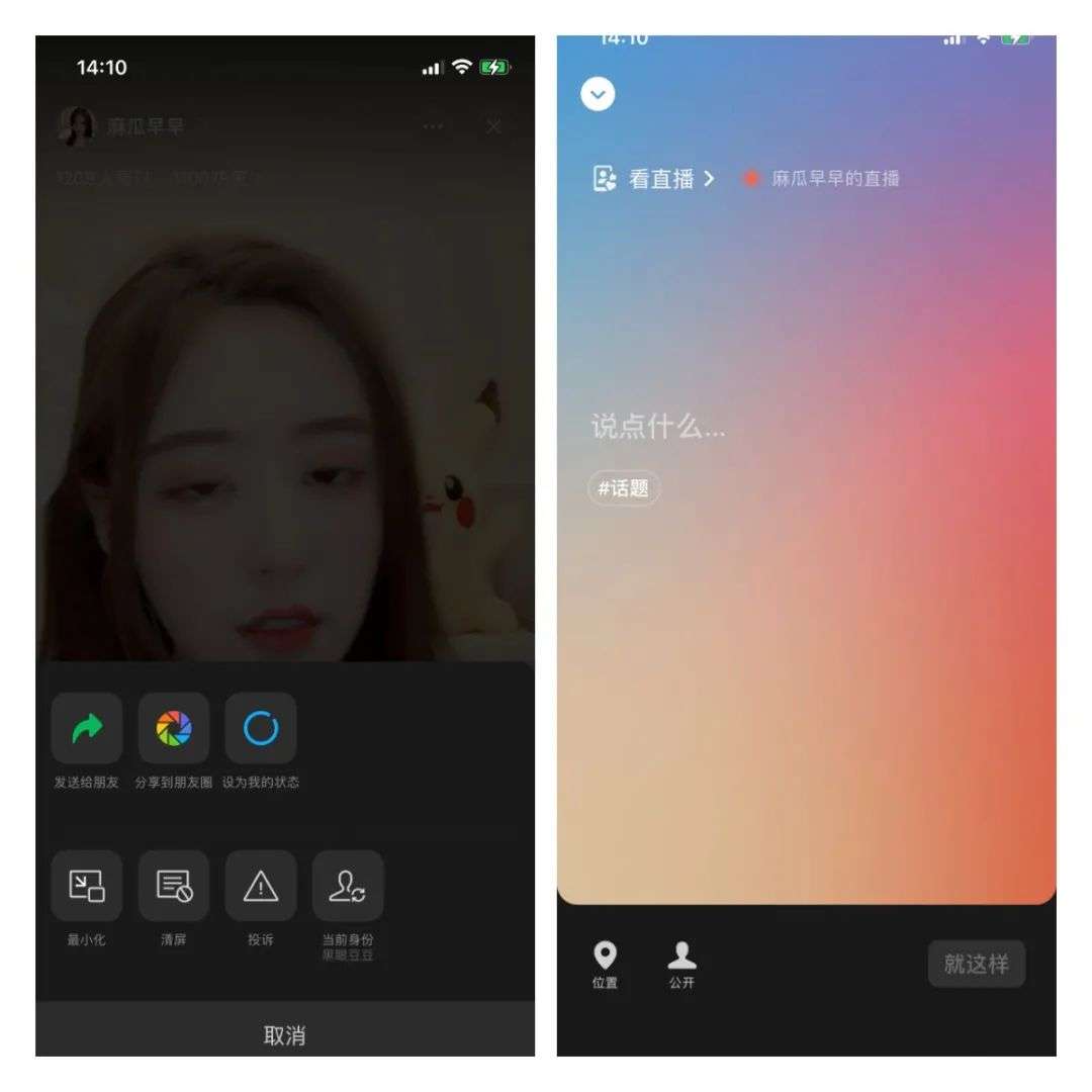 可以通过好友当下的状态,去浏览视频、浏览公众号、看直播,通过好友的状态看世界+体验新世界。