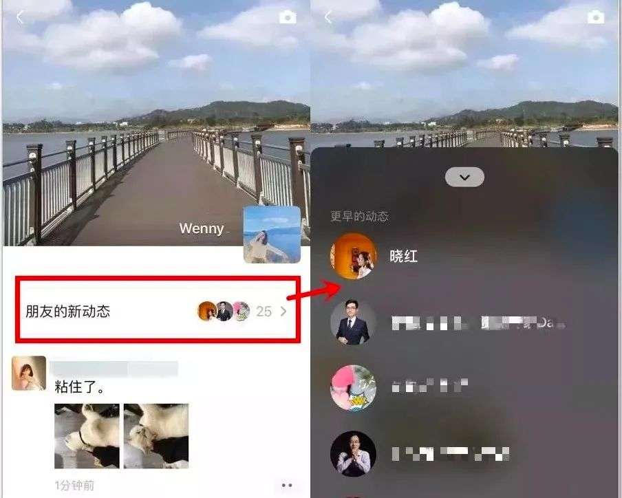 可以在头像侧增加蓝色小圆圈,类似此前视频动态的提醒,相比在微信昵称后面增加表情符号,更能让用户感知到。