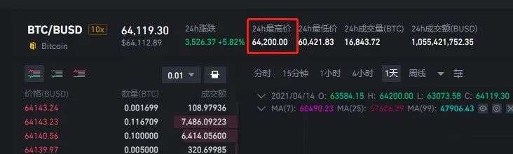 4月14日,比特币接连突破62000美元、63000美元、64000关口,最高触及64200美元,创下历史新高。截至发稿,比特币价格为64119美元,日内涨幅超过5%。