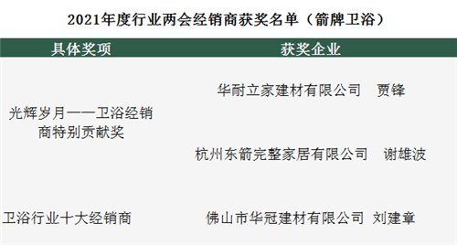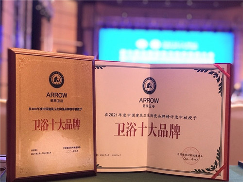 箭牌卫浴荣获2021年度中国建筑卫生陶瓷"卫浴十大品牌"