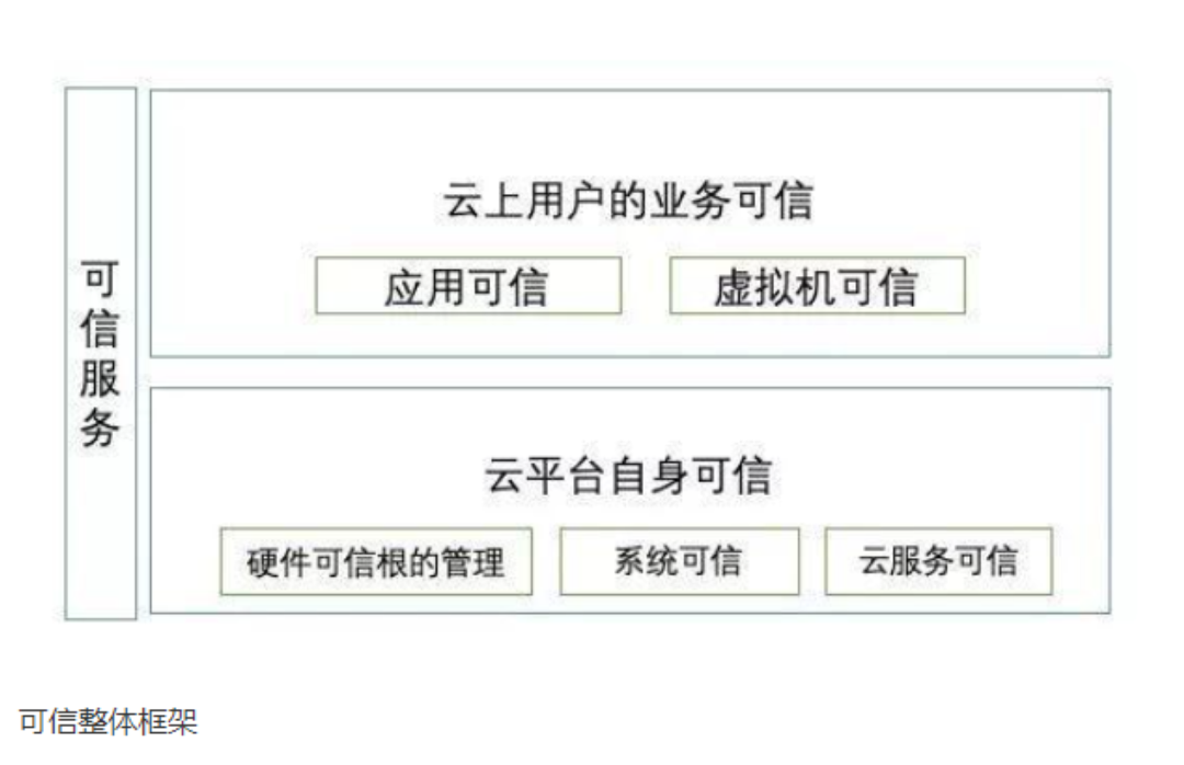 如依赖云平台硬件安全中的可信计算能力,通过自研开发的可信服务,阿里云实现了云上的软件栈可信;云平台可信则指确保云平台上运行的系统软件,如固件、操作系统(OS)的安全,保障平台上的系统不被篡改,即保持运行环境是所要求的运行环境。