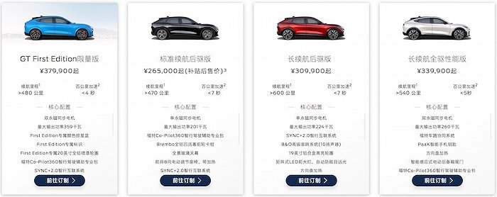首先是福特。它刚刚在中国推出了这两年最重磅的纯电动车型Mustang Mach-E,受关注度极高——起码长得就比特斯拉要超级漂亮。其中,标准续航后驱版CLTC循环工况下续航里程达到了470km,补贴后是26.5万元,正好落在10-30万元区间内。