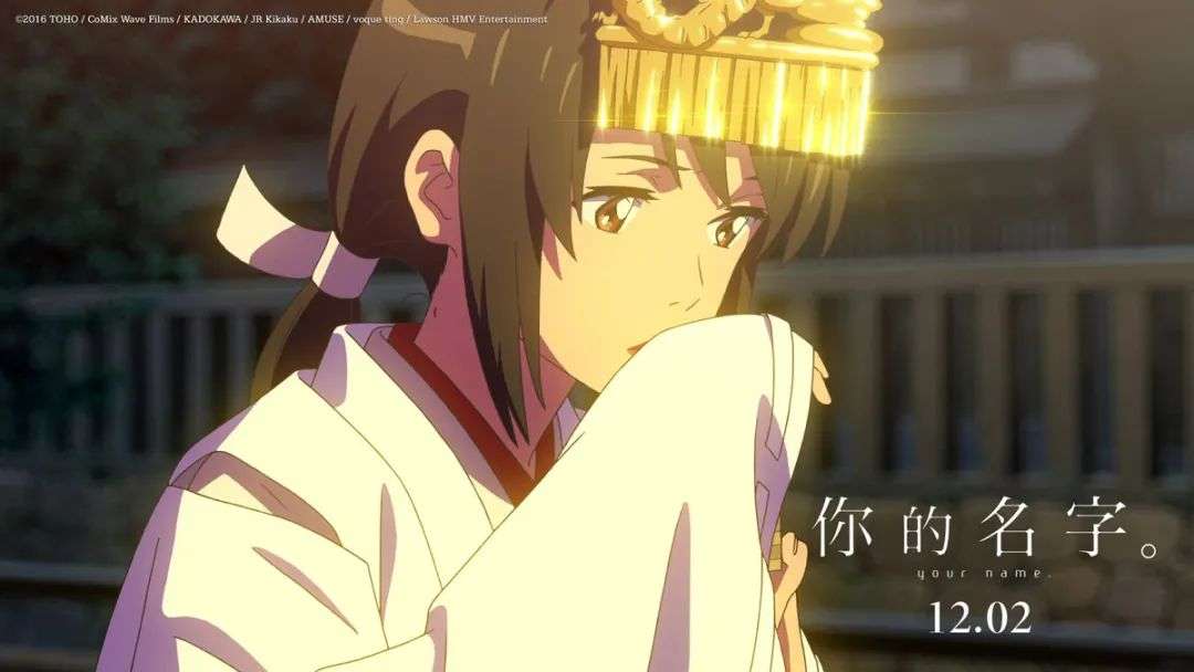 又比如新海诚导演的动画电影《你的名字。》,其故事的主线是分别居住在城市、乡下两位男女高中生互换身体,并寻找彼此的故事。然而作品中各种早已被观众熟知的传统文化元素,如神道教巫女、口嚼酒等内容的出现,都让这部现代恋爱题材作品打上了浓重的日本传统文化印记。
