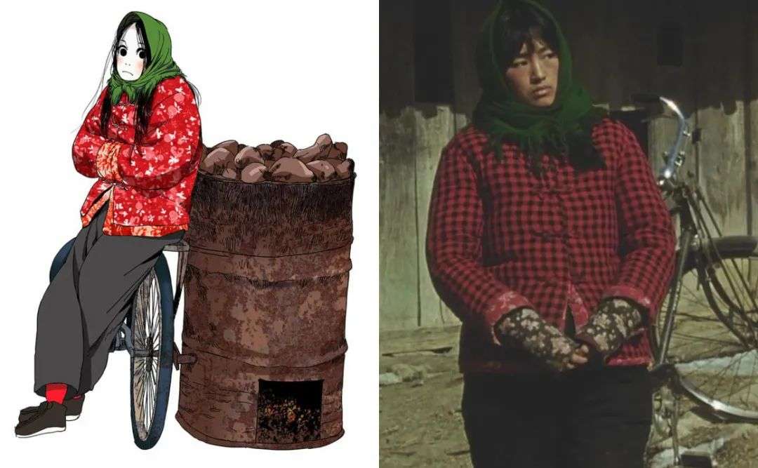 其中最令人印象深刻的,莫过于主角冯宝宝身穿大花袄、头戴红头巾、靠着自行车卖红薯的形象了。有网友表示,这个形象设定或许就是参考了《秋菊打官司》中巩俐饰演的秋菊形象——而这样的角色造型,本身就是改革开放初期中国北方农村地区妇女的真实写照,能够通过视觉瞬间将其与中国联系在一起。