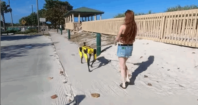 因为她手里用「绳子」牵的竟是一只波士顿动力机器狗!