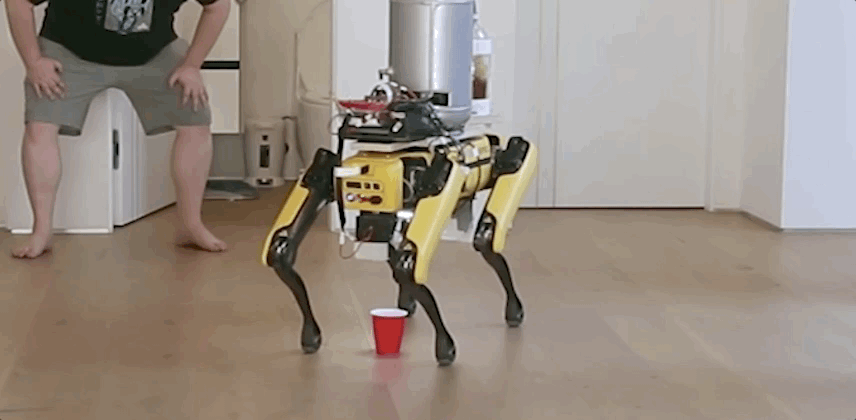博主Michael Reeves最初的想法只是让机器狗Spot成为了一个能够帮人倒啤酒的好帮手。