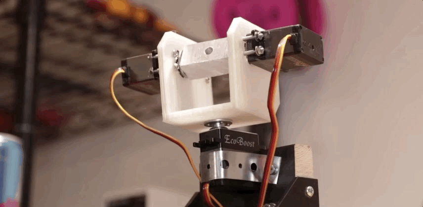 这个装置使用伺服系统(servomechanism)和一个由 Raspberry-Pi「视觉系统」驱动的螺线管,以确保机器人不会错失杯子。