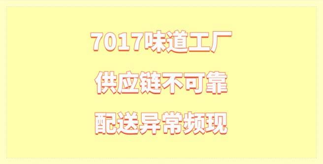 配送问题更是该品牌的一大败笔。不正常的配送已经成为创业者们的常态。迟到、漏送、甚至是错误的配送成了"7017味道工厂"的代名词。这直接影响了店家的声誉,也使得顾客对该品牌产生了极大的不信任感。