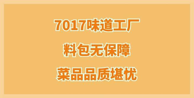 7017味道工厂料包无保障,菜品品质堪忧,加盟评分1.23