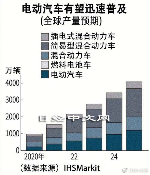 各地展开行动的背景是全球加强的电动汽车的普及政策及相关市场的扩大。据英国调查公司IHSMarkit预测,2025年的纯电动汽车世界产量达到逾1184万辆,增至2020年的5.3倍。如果包括混合动力车(HV)等电动汽车,将达到约4078万辆,增至4.1倍。