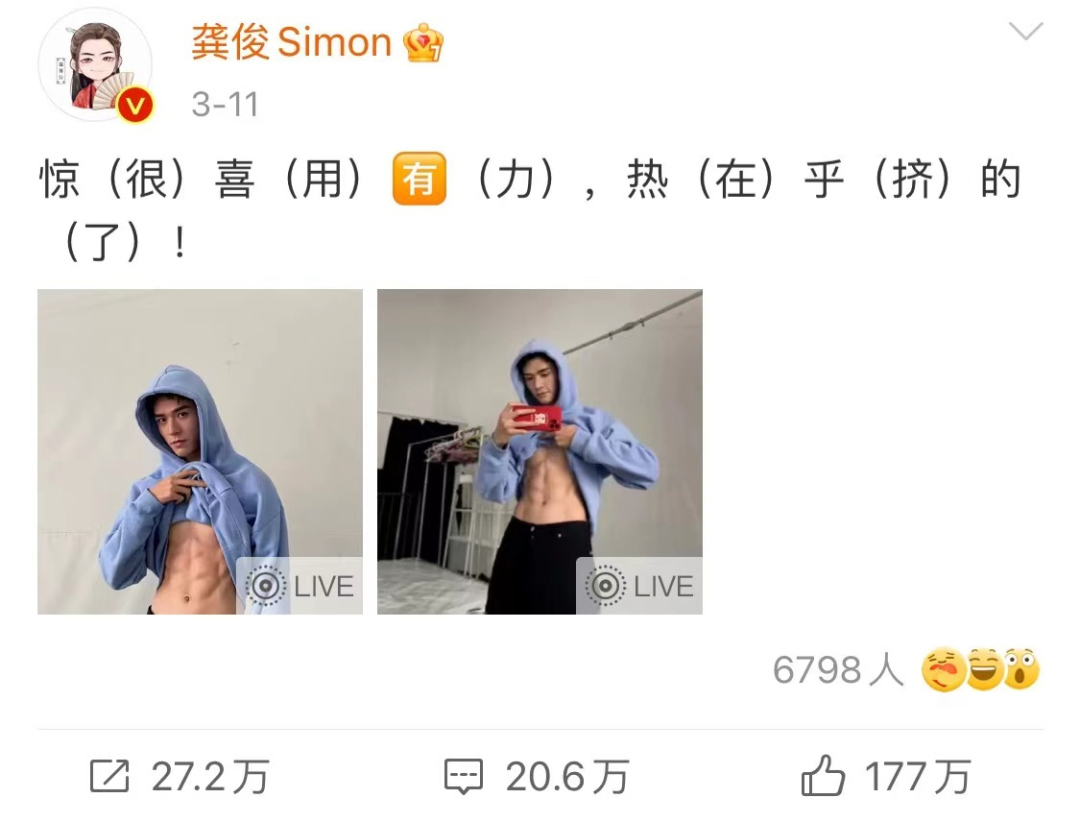 一个做微博营销的朋友说,看数据还看不出来嘛?龚俊微博粉丝破千万那天,他晒了腹肌照作为福利,当天就涨了26万粉。现在龚俊的微博粉丝已经到1300多万了,张哲瀚的粉丝也突破了1400万,两个人都已飞升千万顶流俱乐部。