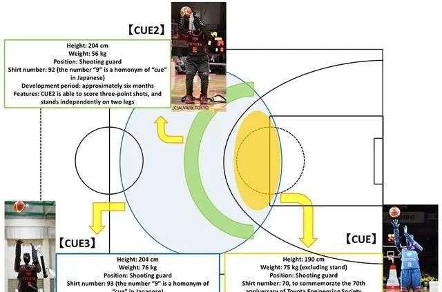 到了CUE2,机器人的身高从190公分增加到204公分,投篮射程也增加到三分线外,同时还将下半身也得到了加强,能够自行站立了。