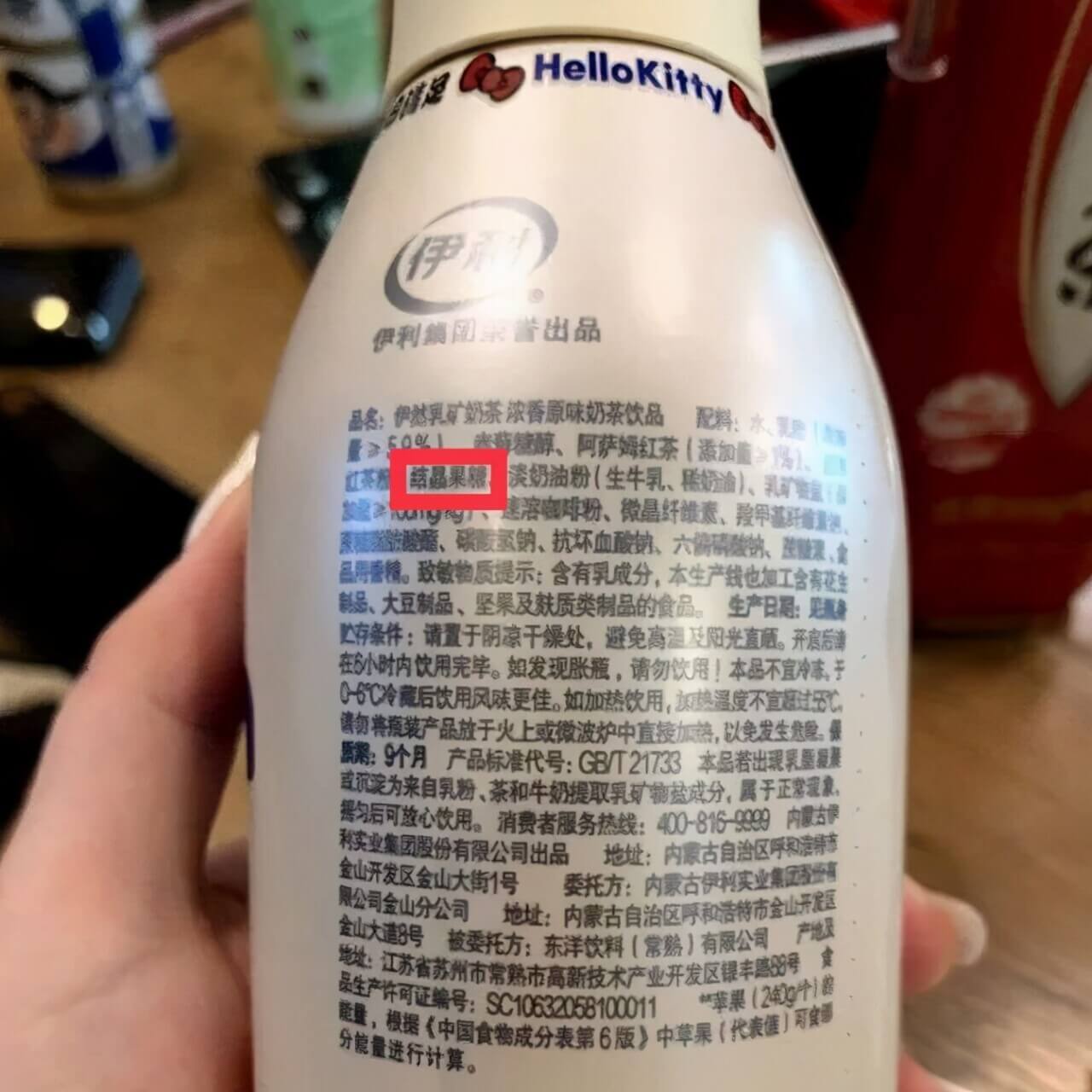 以伊然乳矿奶茶为例,明确声明“0蔗糖”,虽然比元气森林乳茶表述严谨,但却和元气森林乳茶一样,回避了成分内含有其他糖类的事实。
