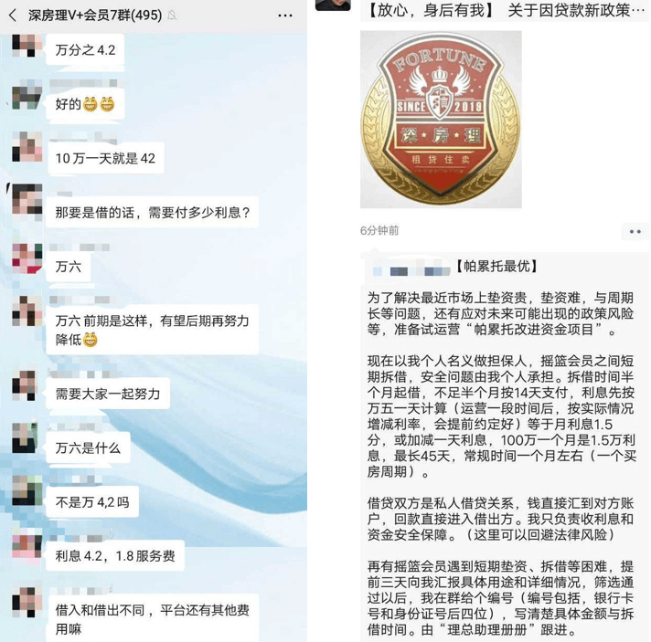 另外,房理小程序中的帕累托值也暗藏玄机。会员将闲置资金注入其中,可获得万分之四的日息收益,若其他会员有借贷需求,深房理则会按照万分之六的比例收取利息。