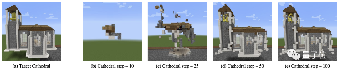 不过,NCA对于构建较大的实体(比如:教堂)仍具有挑战性,因为模型经常陷入局部极小值,需要更长的时间来训练。
