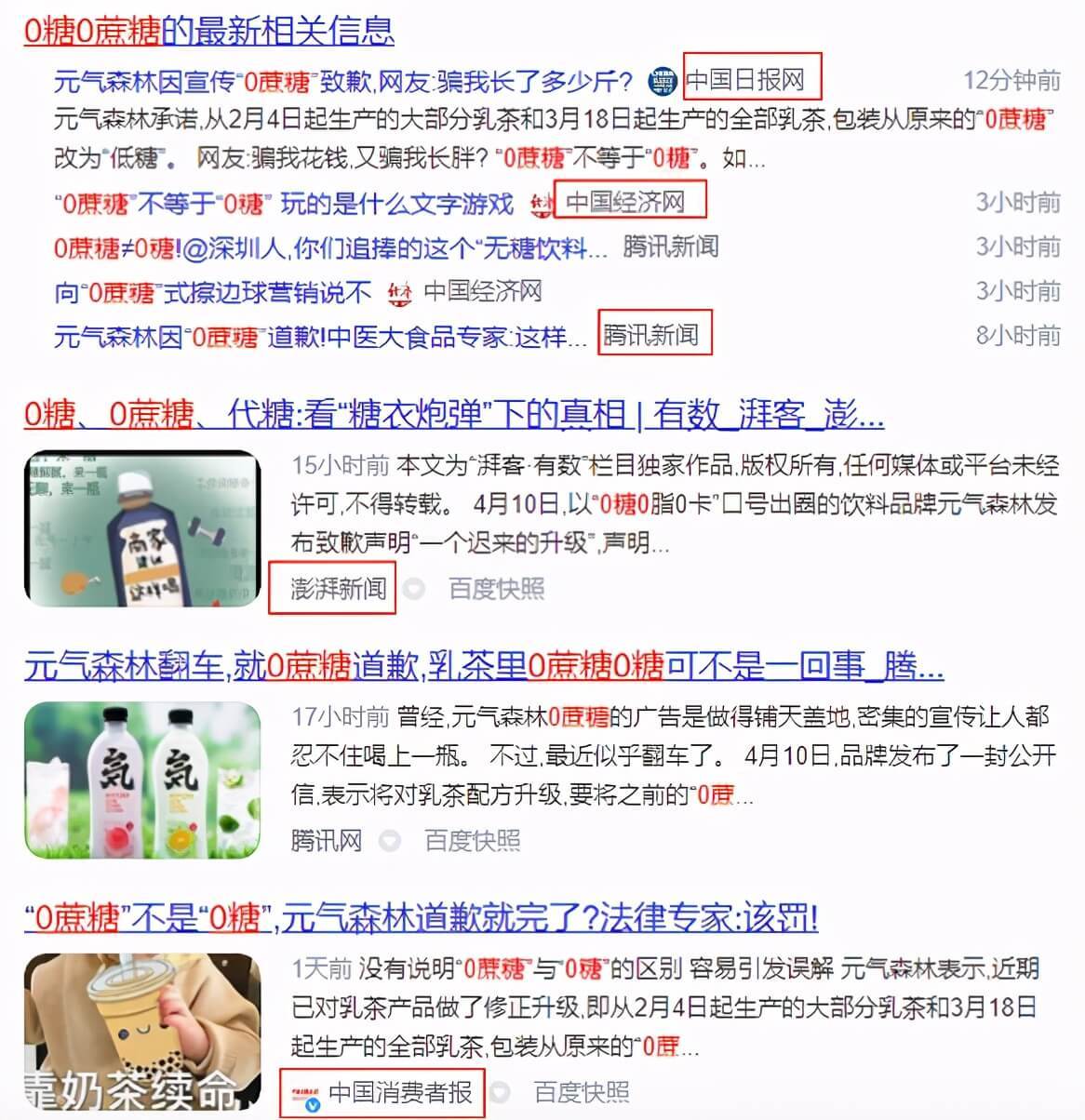 将脂肪、卡路里暂放一旁,问题又回到了糖的问题上,含糖会导致发胖,不含糖不会导致发胖,消费需求使然,0糖喝0蔗糖虽然是一字之差,却完全不同,各大官媒、央媒对元气森林欺骗消费者的行为也进行了批评。