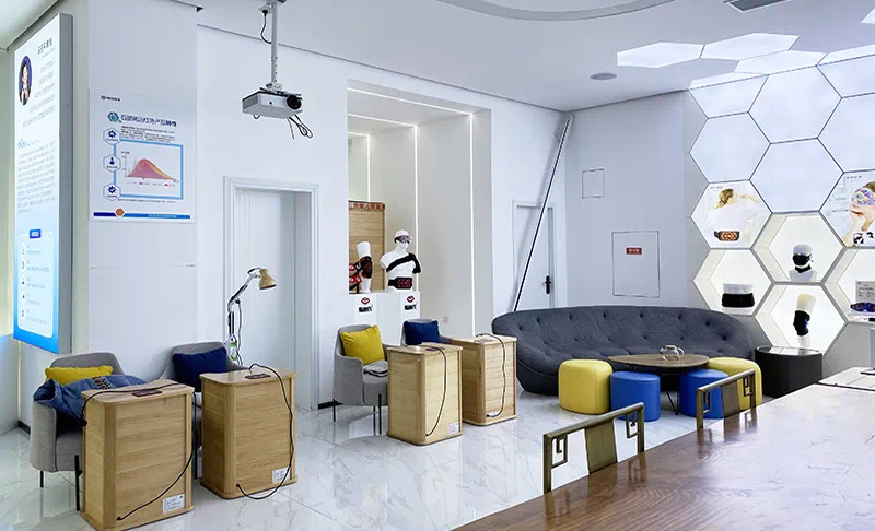 成都一家烯时代的代理商门店里面摆放着石墨烯远红外足疗桶、石墨烯热灸烤灯、石墨烯能量房等石墨烯理疗设备。