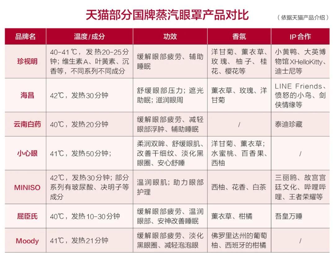 40~42℃的恒温发热,15~60分钟的发热时间,更舒适透气的无纺布或棉布材质……各家推出的蒸汽眼罩产品越来越相似。