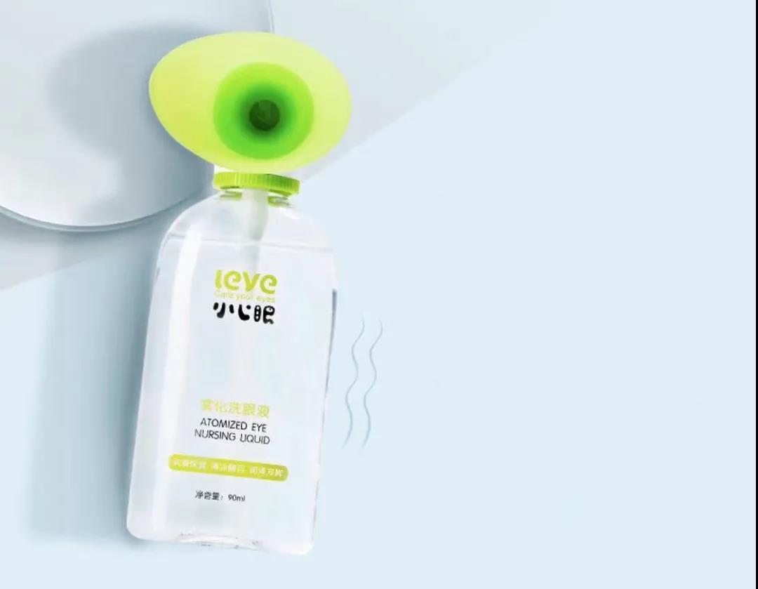 有趣的是,小心眼推出了一款洗眼液的进阶版本——雾化洗眼液。在90ml小容量的洗眼液瓶身上装一个拥有专利的喷雾口,就能将液态洗眼液转化为雾态。
