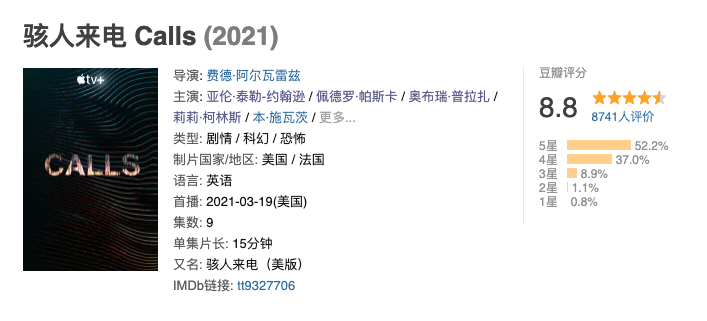 即便是最近影评人强烈推荐的骇人来电,在豆瓣上也只有 8000+ 人进行过评价。