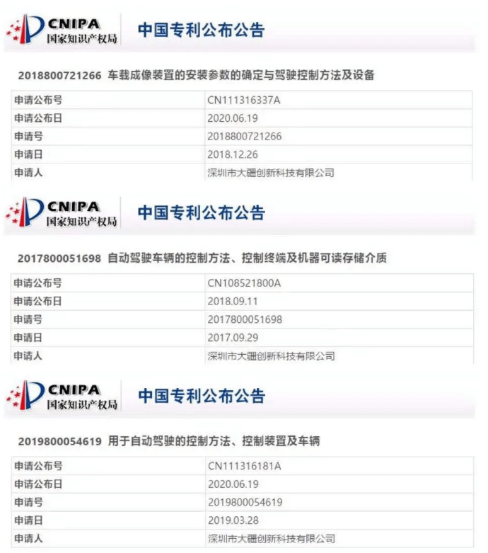 有业内人士告诉深潜atom,大疆依靠在无人机领域积累的视觉、算法等经验,并基于其传感器硬件和视觉识别算法申请了大量专利,而这些专利成为大疆进入自动驾驶领域最大的底气。这些专利都直指自动驾驶L3/4级别系统方案。