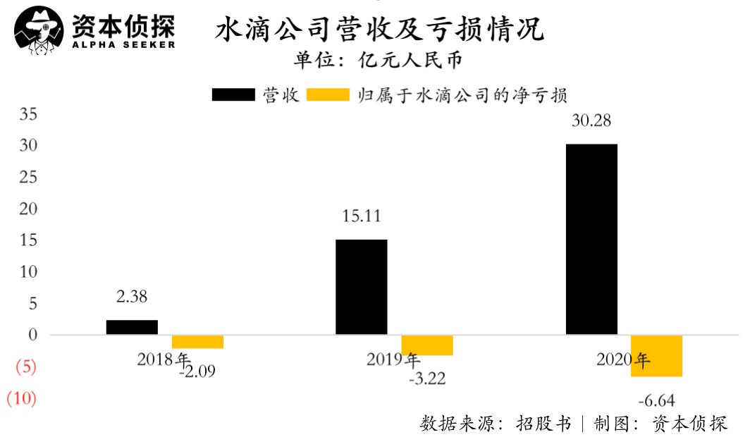 招股书显示,2018年至2020年,归属于水滴公司的净亏损分别为2.09亿元、3.22亿元及6.64亿元,呈现持续扩大趋势。