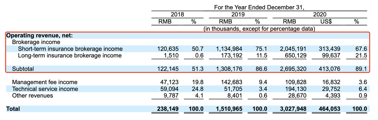 根据招股书,水滴公司旗下主要有水滴筹、水滴互助(已关停)、水滴保等业务,其2018年至2020年的营收分别为2.38亿元、15.11亿元、30.28亿元,收入主要来自向保险公司提供的保险经纪服务、水滴互助业务停止之前产生的会员费和管理费、以及平台向保险承保人及其他保险经纪公司提供的技术服务。