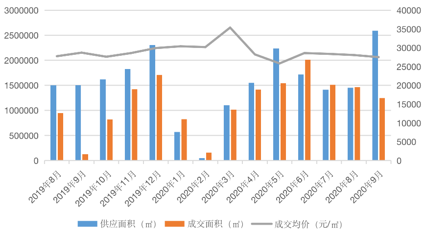 图:2019年8月-2020年9月新建商品住宅月度供求量价