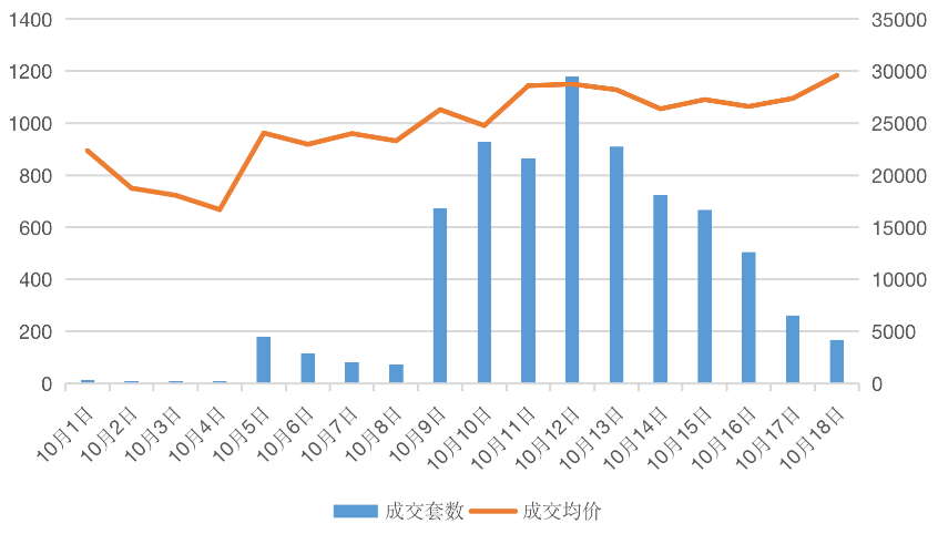 图:2020年10月1-18日单日成交量价(单位:套、元/平方米)