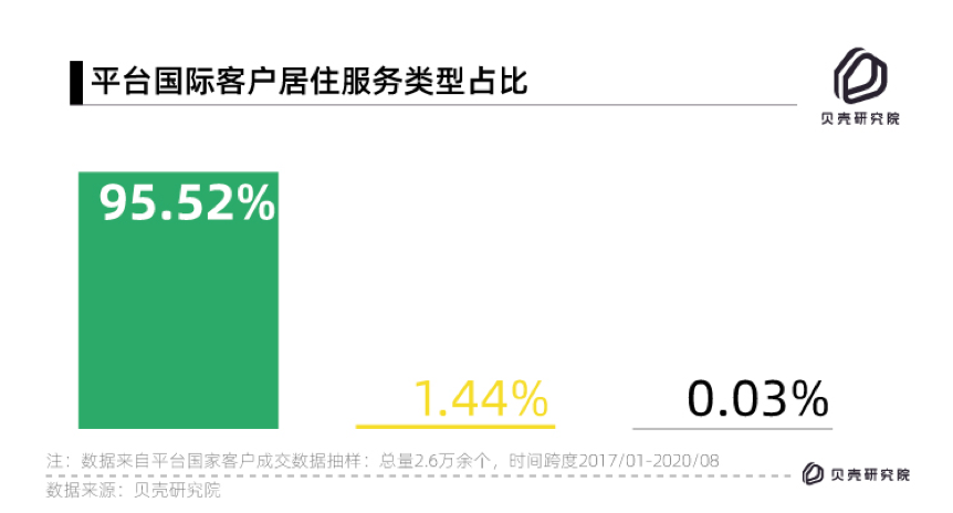 在平台租赁、买卖、商业三种国际客户居住服务交易中,购房服务业务只占到了1.4%。