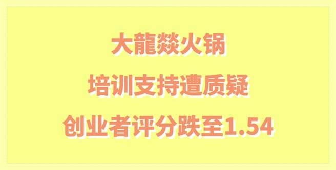 大龍燚火锅培训支持遭质疑,创业者评分跌至1.54