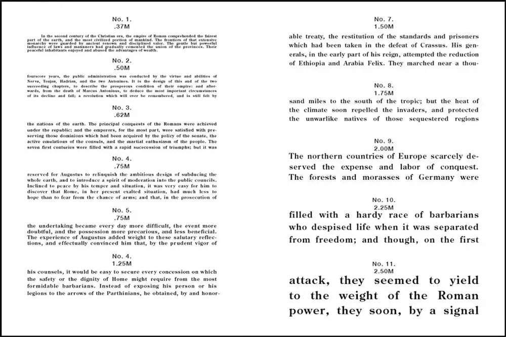 ▲ Heinrich Küchler 在 1843 年发布的视力表. 图片来自:Typography