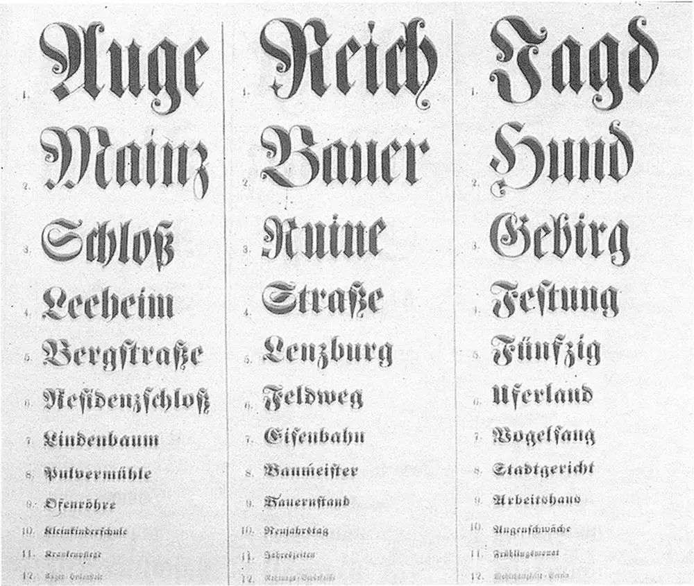后来,这些符号被哥特风字母替代,即便能看清也未必能认对,又怎么能验出正确视力呢?这张视力表仅在 1843 年发布了一次,鲜为人知。