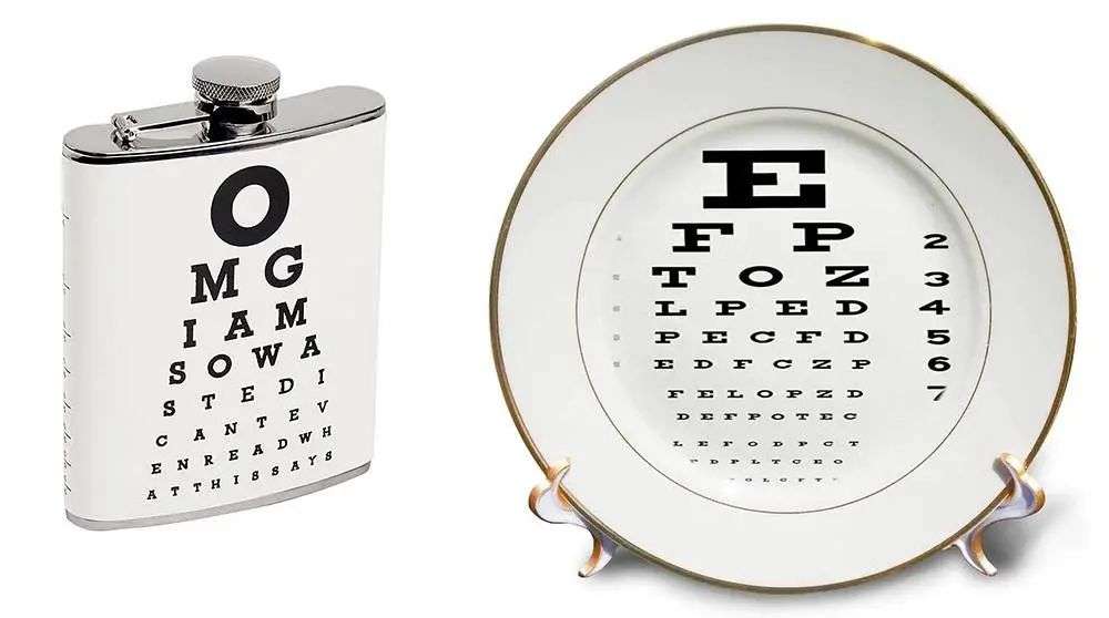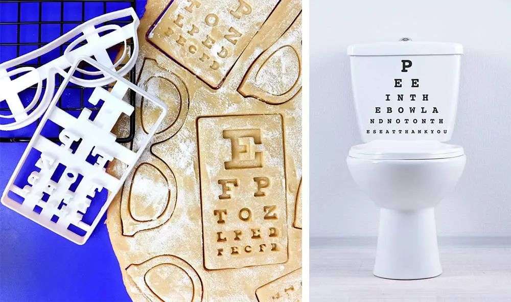 视力表还被用在衣服、家居用品、食物模具等意想不到的地方,甚至还能做成贴纸粘在马桶盖上。