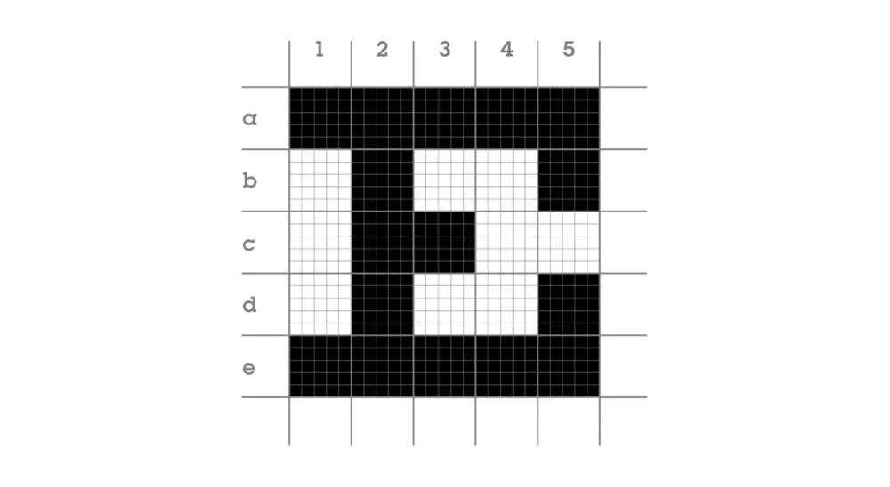 这些字母的设计也很意思,设计的过程就像是网格填色游戏。斯内伦在 5 行 x 5排的小格子里面,填出了这些字母。