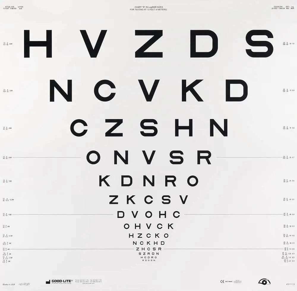 最后,由美国国立眼科研究所的 Rick Ferris 博士操刀,结合了格林的对数概念、Sloan 字体和 LogMAR 布局,打造出全新的 ETDRS 图表,成为了视力测量圈的黄金标准。