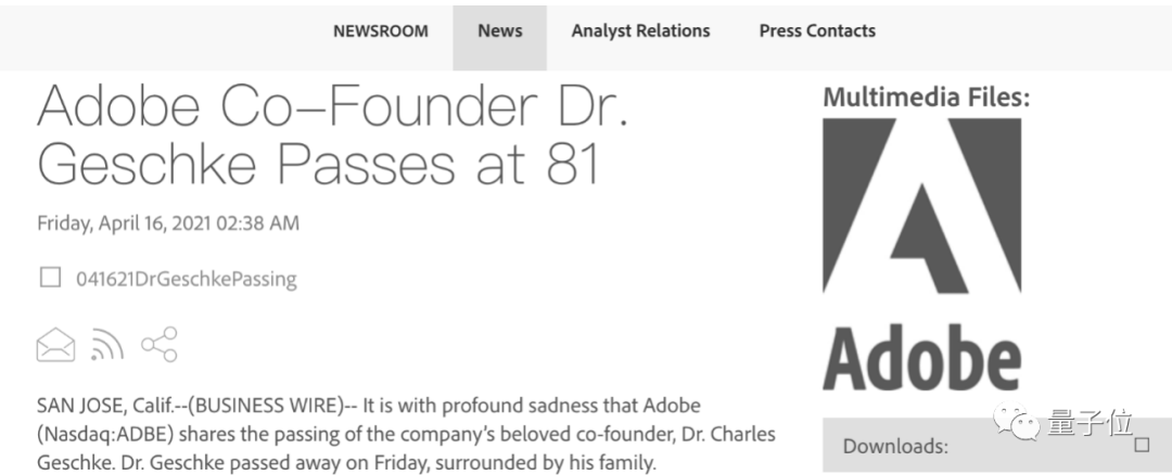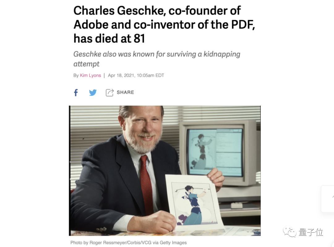 据Adobe公司官方网站公布,PDF格式发明者、Adobe公司联合创始人——Charles Geschke(查尔斯·格什克)于当地时间4月16日去世,享年81岁。