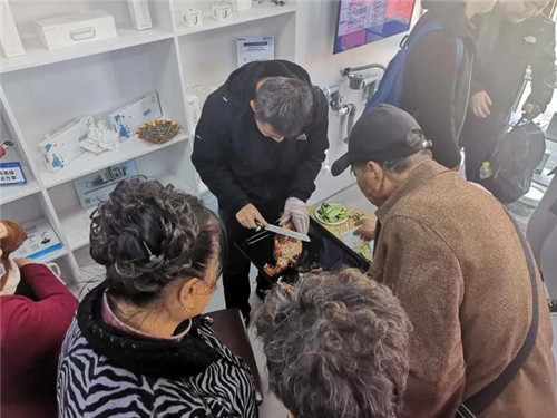 现场,小店里用海尔智慧蒸烤一体机烤起了烤鸭,给到场的各位用户品尝,不少用户感叹跟在北京吃过的口味一模一样。海尔的老用户姜大爷在品尝了烤鸭后,表示很合自己的口味,正好晚上孙子要来吃饭,就拜托小店临近晚饭时间帮忙烤一只,自己带回家给孙子也尝尝。