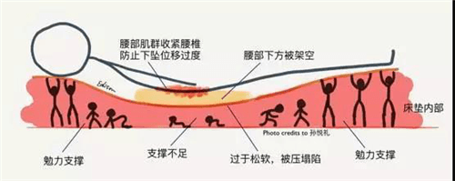 其实,和大多数人的判断一样,软床确实不咋地。睡觉时无论是仰卧还是侧卧或者其他姿势,脊柱周围的肌肉都会发力以维持一定的支撑。太软的床垫不能给身体足够支撑,一觉醒来就会有腰酸背痛之感。