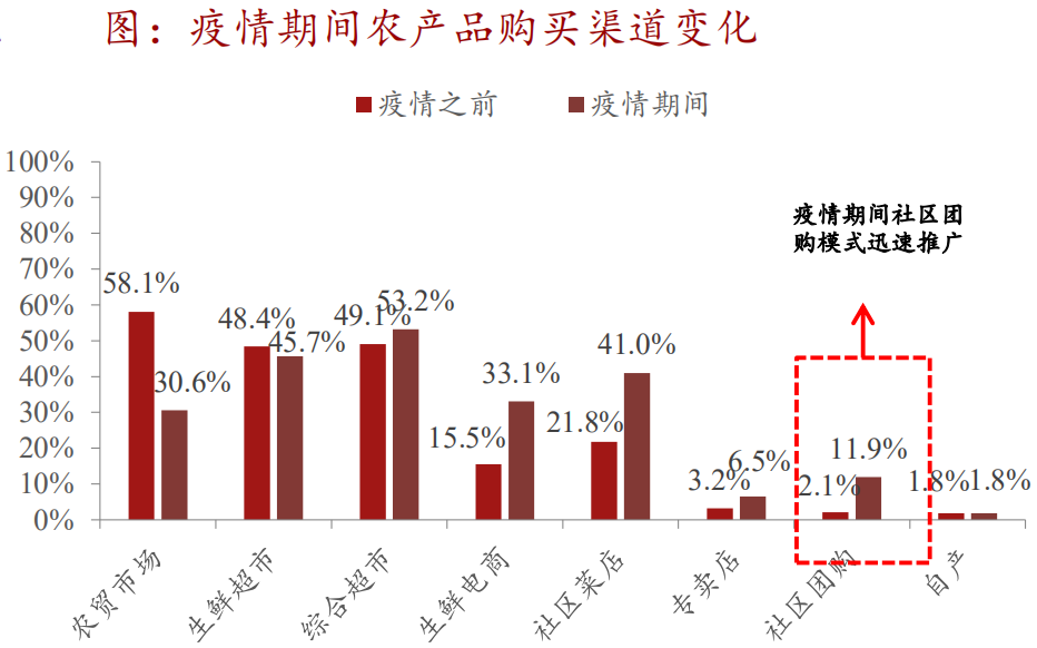 骤然增长的需求下,赛道被重新激活,大量新用户被拉入这一体系,根据凯度咨询数据,疫情期间农产品的渗透率快速提升,目前用户群体中约有1/4是疫情期间新增用户,其中79%表示在疫情后仍将继续使用。