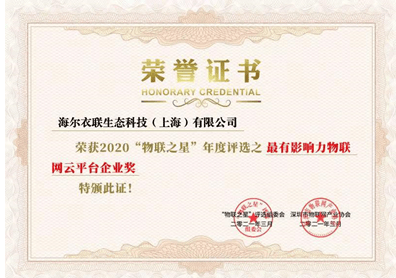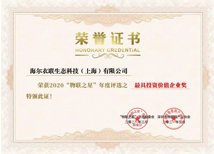 4月20日, 在上海举办的“2021中国物联网CEO大会”现场,海尔衣联生态科技(上海)有限公司连获中国物联网行业年度评选“2020物联之星”两大奖项,分别是2020中国最有影响力物联网云平台企业奖和2020中国物联网最具投资价值企业奖!