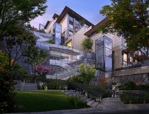 半山之上被很多天然植被环抱,风景秀丽、环境优雅、空气清新。有树木的地方空气质量都非常好,对人的呼吸健康非常有益。郁郁葱葱的植被也有隔绝噪音的功能,像一道天然的隔离带,带来宁静的生活环境。同时,山的深沉、稳重、宁静、陡峻等特点对人有着独特气质的影响,带给人心灵的宁静。隐居于半山,融于自然,又能对接现代的城市生活,是最为理想的生活状态。